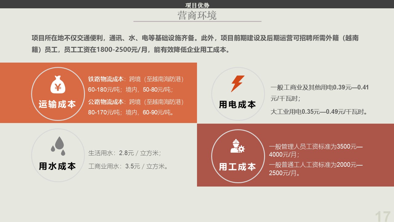 3)口岸优势突出:项目所在地不仅通过省级道路与越南老街市连接,具有得天独厚的交通优势,且在云南对外开放的18个一类口岸、 7个二类口岸中,红河片区同时拥有陆运的铁路与公路两个国家级一类口岸,通关便利化优势显著。