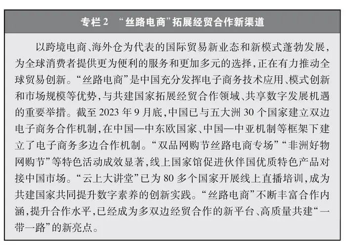 贸易投资平台作用更加凸显。中国国际进口博览会是全球首个以进口为主题的国家级展会,已连续成功举办五届,累计意向成交额近3500亿美元,约2000个首发首展商品亮相,参与国别与参与主体多元广泛,成为国际采购、投资促进、人文交流、开放合作、全球共享的国际公共平台。中国进出口商品交易会、中国国际服务贸易交易会、中国国际投资贸易洽谈会、中国国际消费品博览会、全球数字贸易博览会、中非经贸博览会、中国-阿拉伯国家博览会、中俄博览会、中国-中东欧国家博览会、中国-东盟博览会、中国-亚欧博览会等重点展会影响不断扩大,有力促进了共建国家之间的经贸投资合作。中国香港特别行政区成功举办了8届“一带一路”高峰论坛,中国澳门特别行政区成功举办了14届国际基础设施投资与建设高峰论坛,在助力共建“一带一路”经贸投资合作中发挥了重要作用。