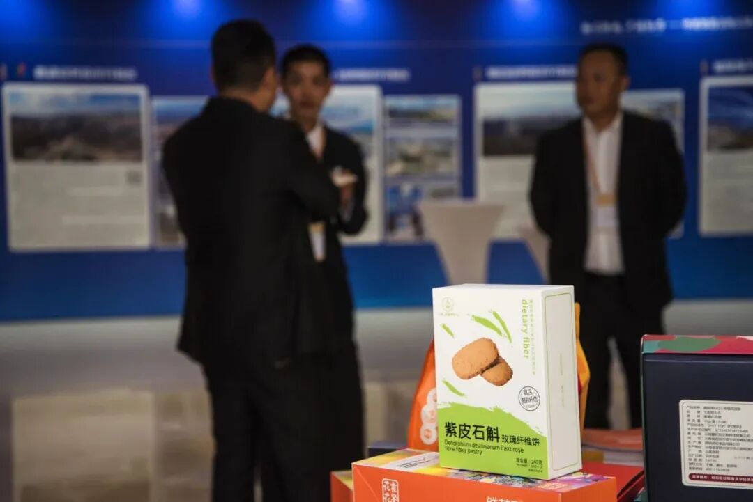 由美捷科技(云南)集团有限公司牵头组织,联合十九怪、品斛堂、月中桂等企业专门为参会嘉宾们设置了云南特色商品品鉴区,褚橙、昭通苹果、鲜花饼、普洱茶、红米饼、绿豆糕等精选的云南特色美食,让与会嘉宾品尝到天然、健康、多样的云南风味,也展现了云南独特的资源和饮食特色。